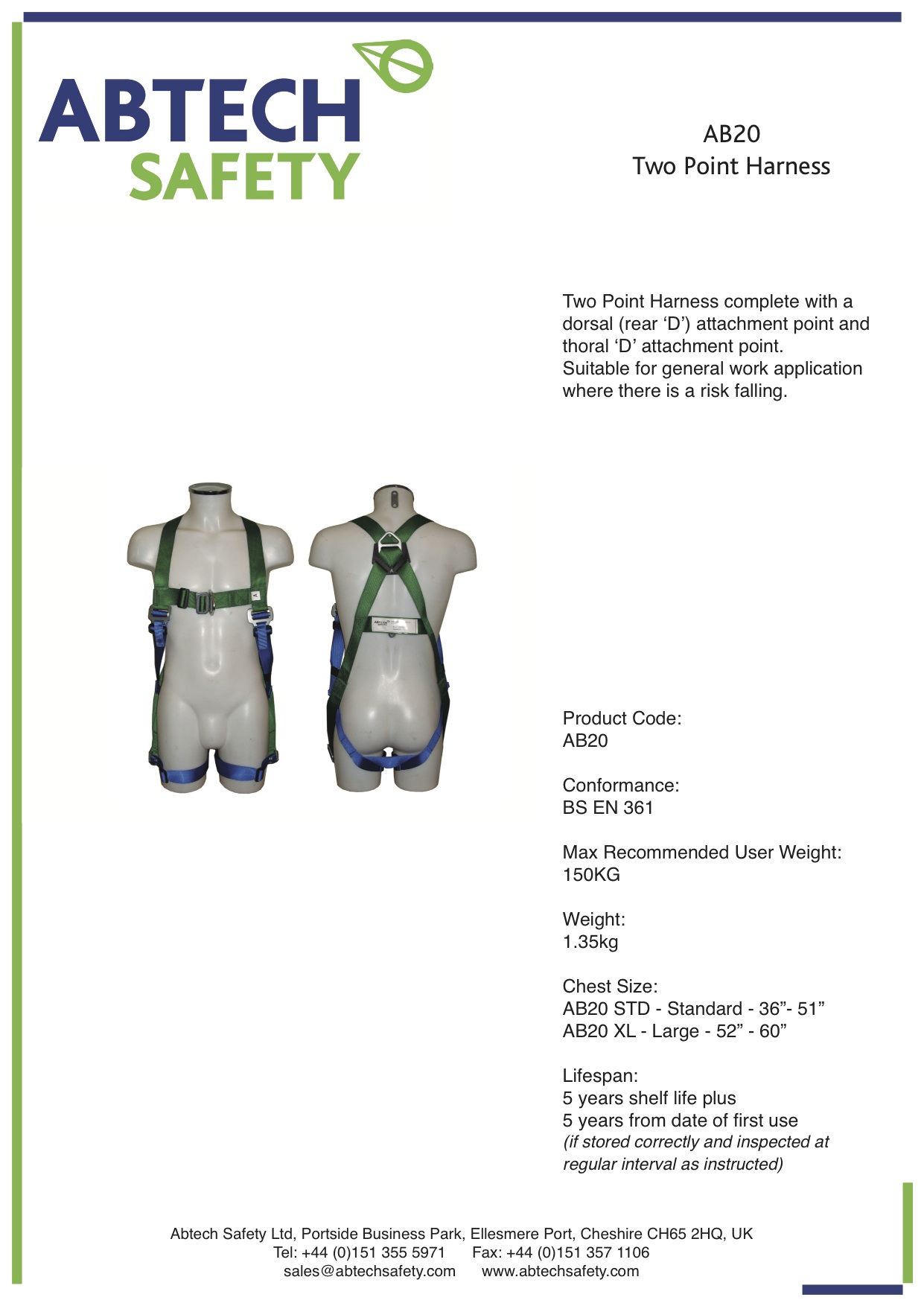 Safety harnesses are a must whenever a person has to work with height or confined space and the Abtech range of height safety equipment is superbly designed made from sturdy matetials that are lightweight and easy to use.